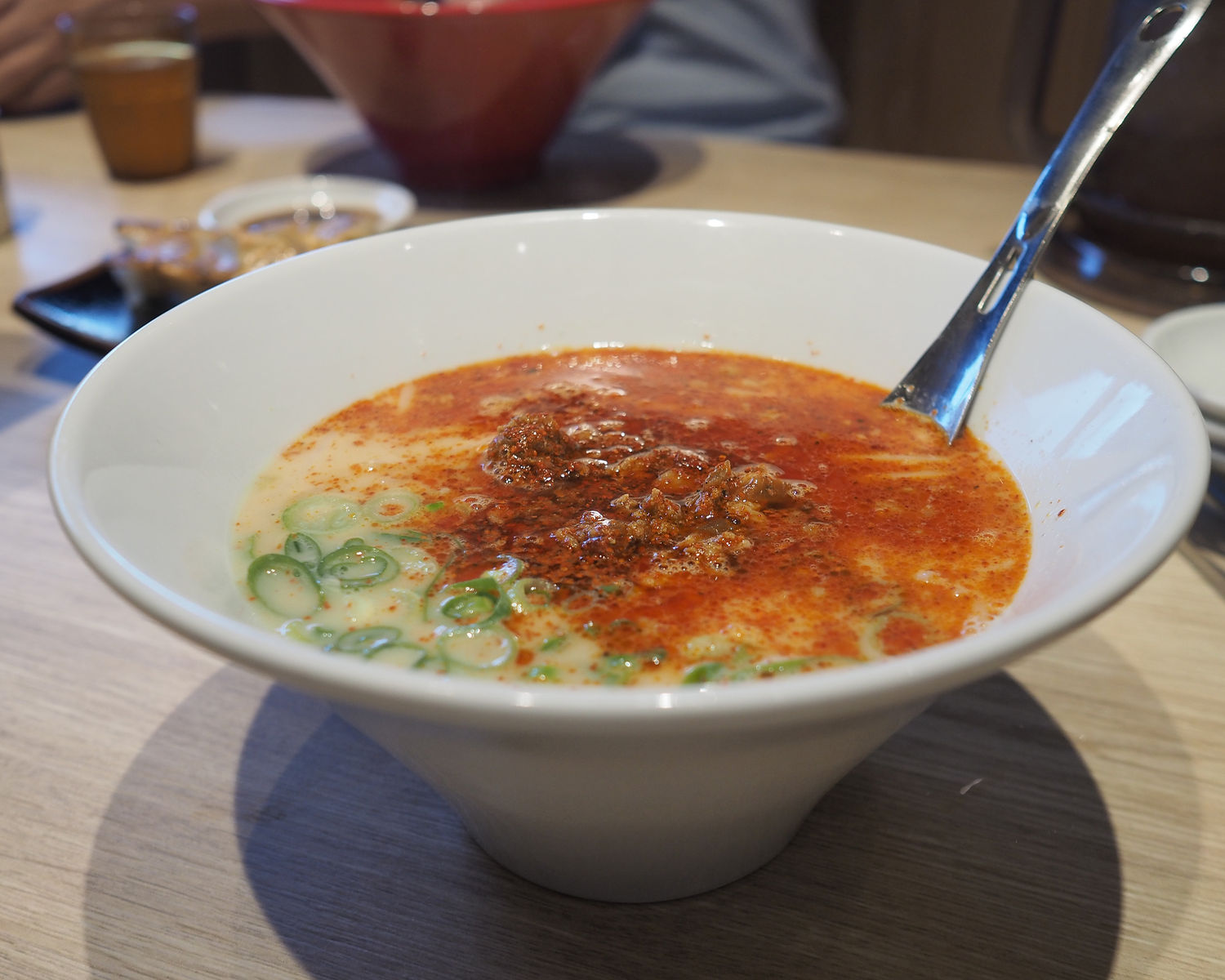 この商品にだけは中太麺が使われているとのことで麺の固さは選べないのですが、豆板醤で炒められた肉味噌は旨辛でありますし、スープに浮かぶ辣油と山椒の辛みは鼻の頭が少し汗ばむほどでありまして、麺と絡んだスープをおいしくいただくことができました