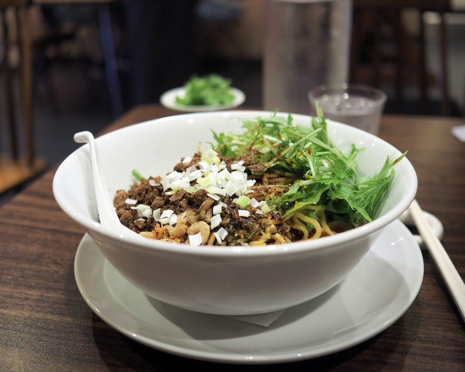 やはりまずは汁なしでしょうと、白胡麻担々麺をいただくことにいたします 券売機で買った食券を店員さんに渡す際に、控えめにも辛口にもできるとのことでしたので辛口でとお願いいたします