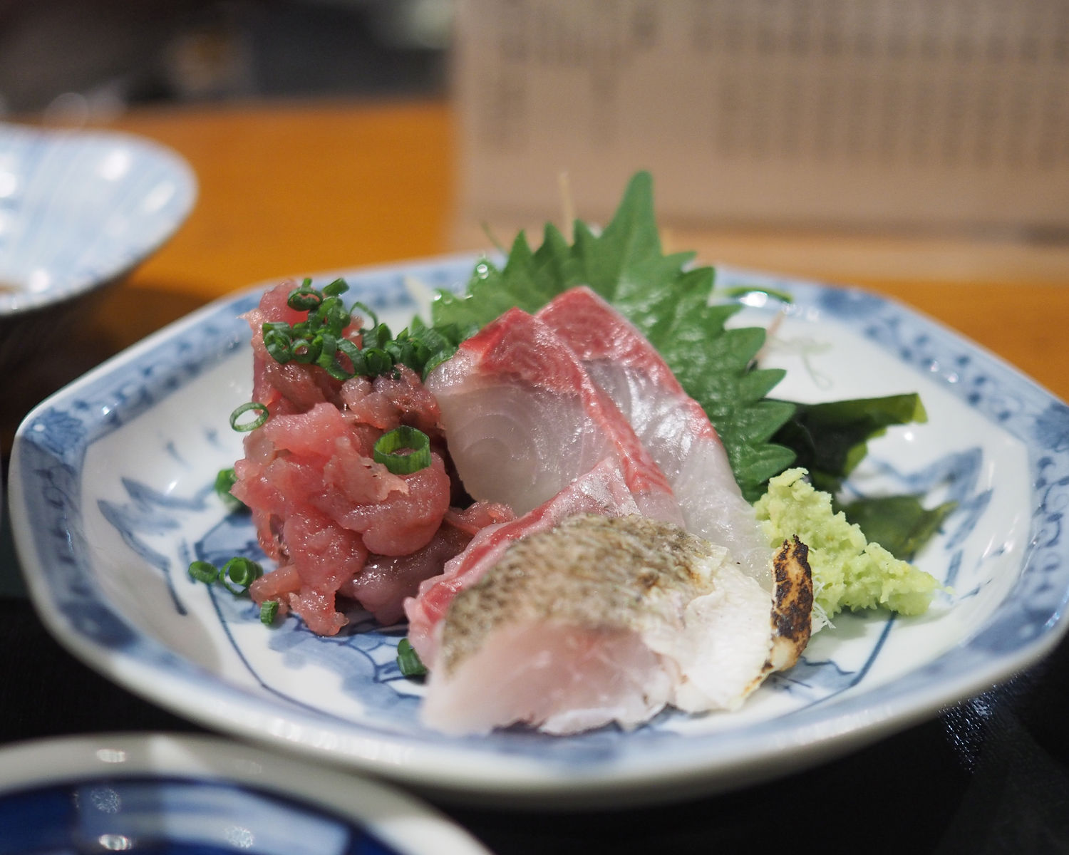 ネギトロ、カンパチ、カマスと盛られたお刺身とともに提供していただけます