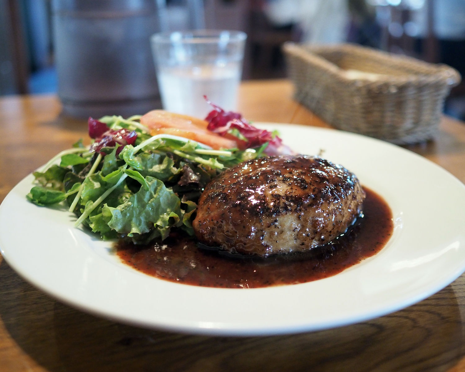 シンプルなハンバーグをペッパーソースでいただくことといたします