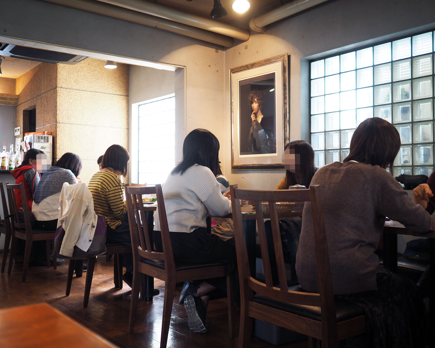 階段を数段降りたところにある入り口を開けますと、まだ12時前でありながらも満席に近い状況でありますし、その8割以上が女性であります