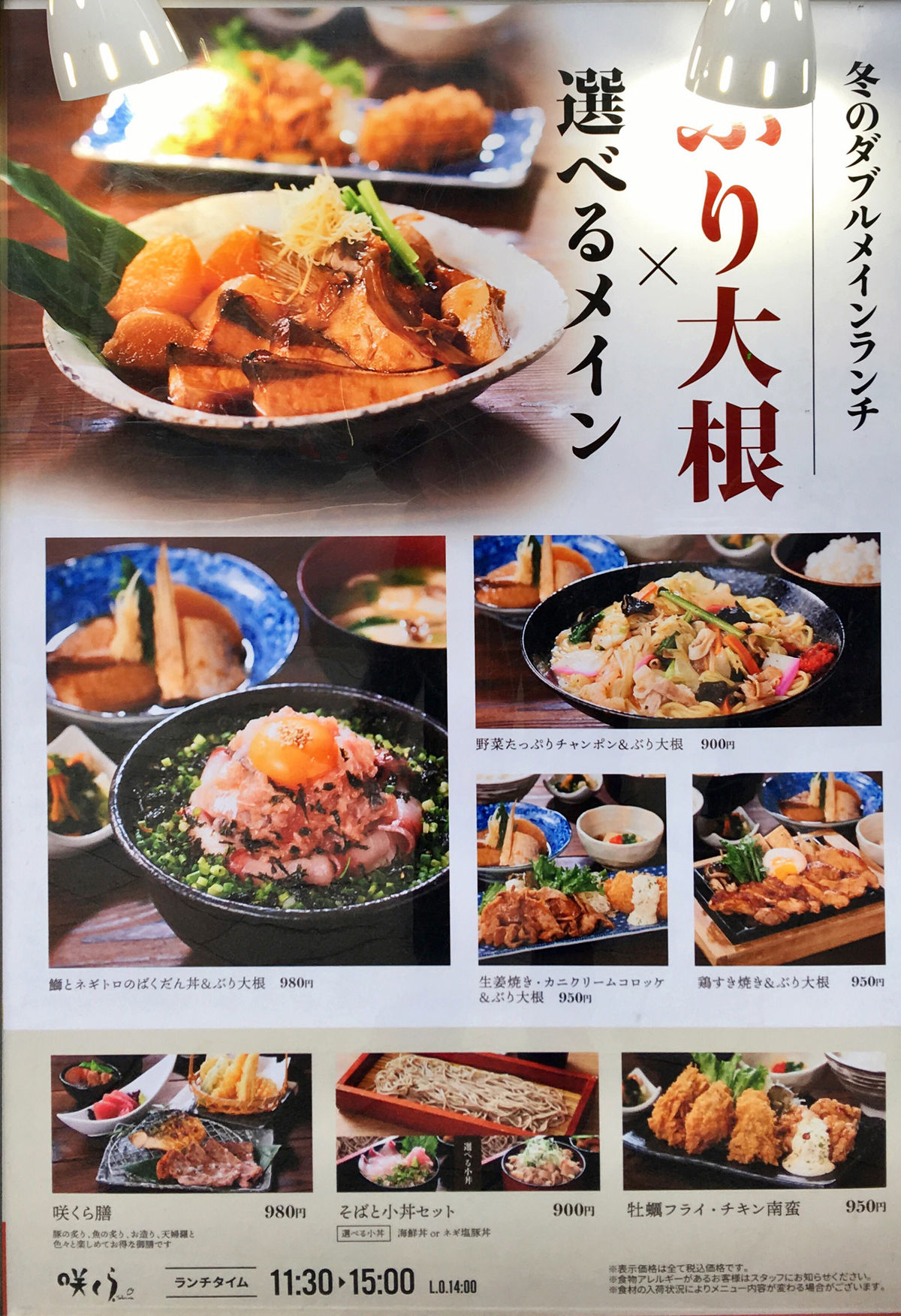 〝冬のダブルメインランチ〟と銘打ったお昼のメニューは、ぶり大根のほかもう一品のお料理を選ぶことができるものでありまして…
