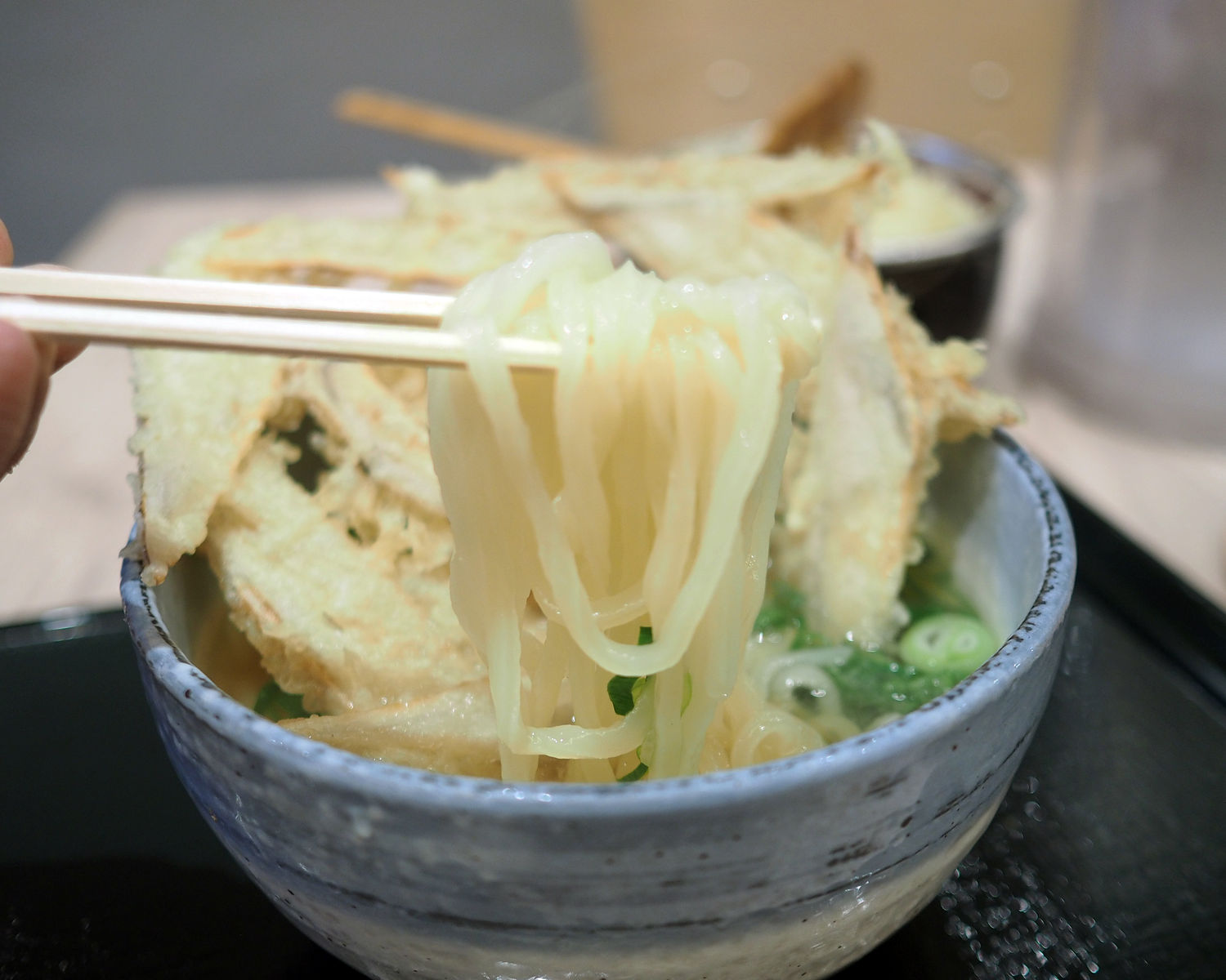 薄くスライスされたごぼうがサクッとした衣に包まれていまして、そのサクッと感を楽しむも良し、つゆに浸していただくも良しであります
