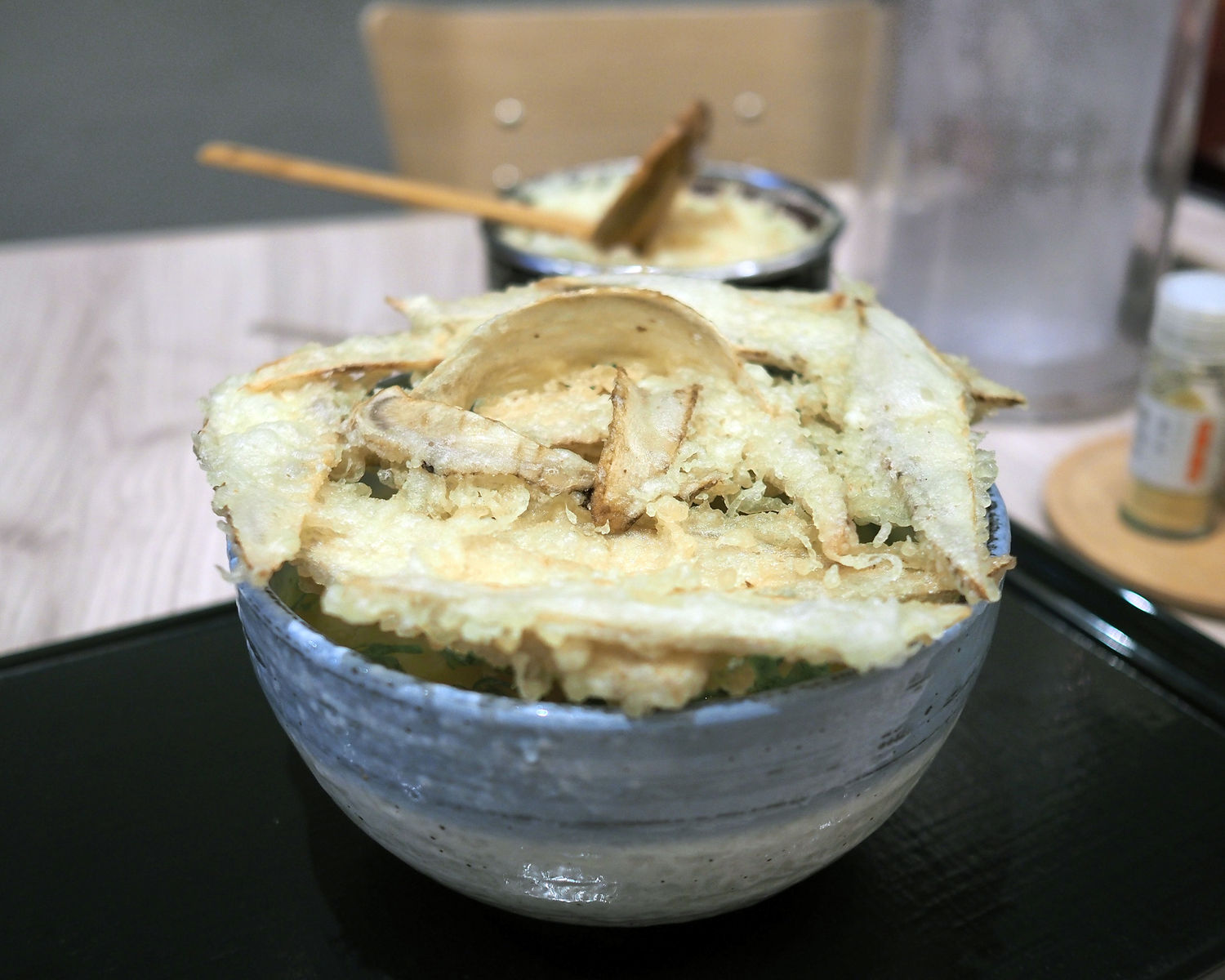 器に蓋をするかのように、丼に乗せられたごぼう天