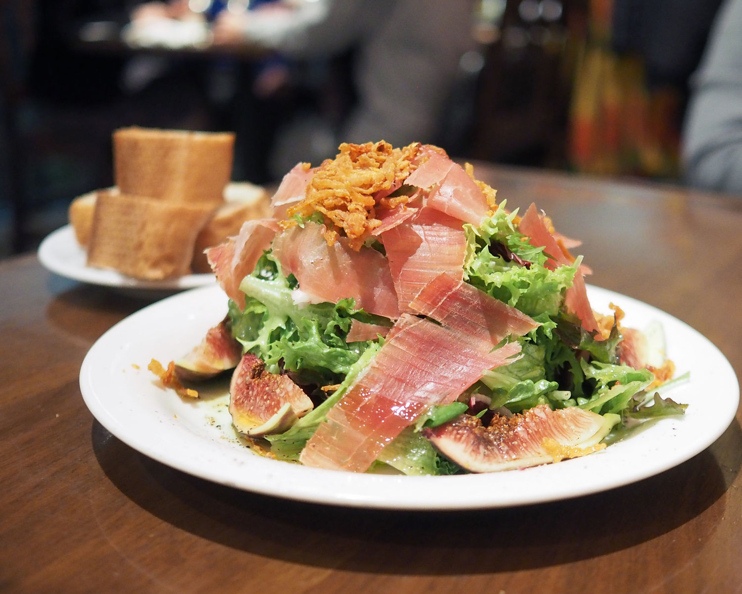 さらに旬のおすすめから「生ハムとフレッシュイチジクのサラダ」をいただきます