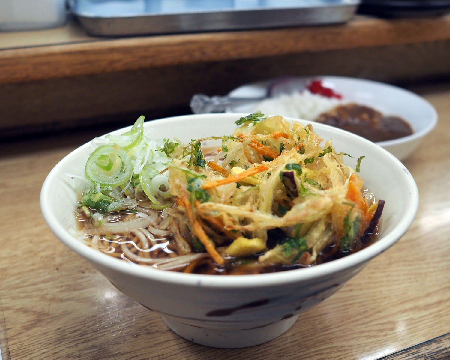 お蕎麦やカレーは正直なところ、お値段なりのものであり特筆することはないのですが、お蕎麦に乗せて良いかと尋ねられたかき揚げはお店で揚げられているものであるようで…