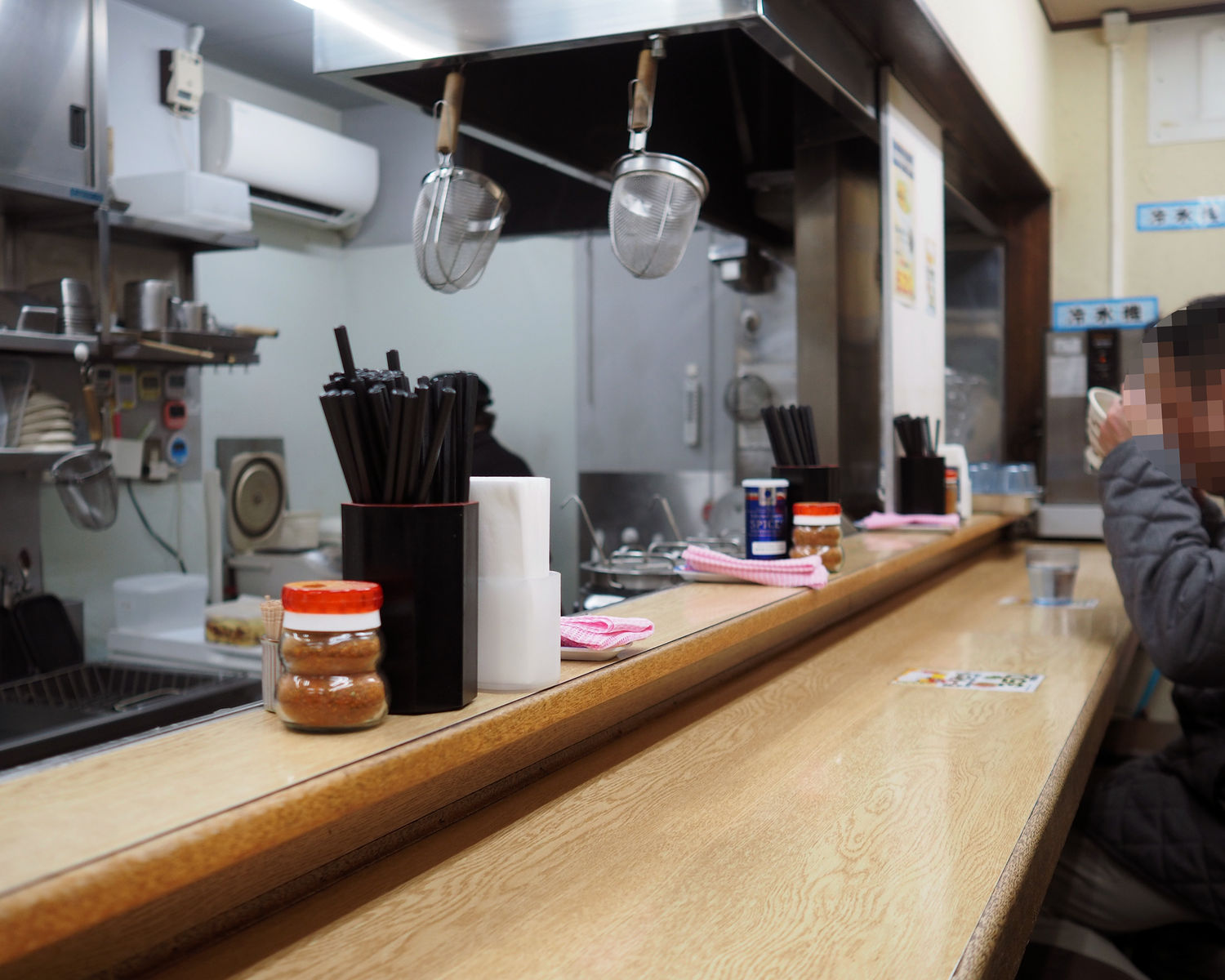 10席にも満たないようなカウンター席の中にいる気が良さそうなおばちゃんが笑顔で迎えてくださいますし、ピカピカに磨かれたステンレスの眩さが目に入ります