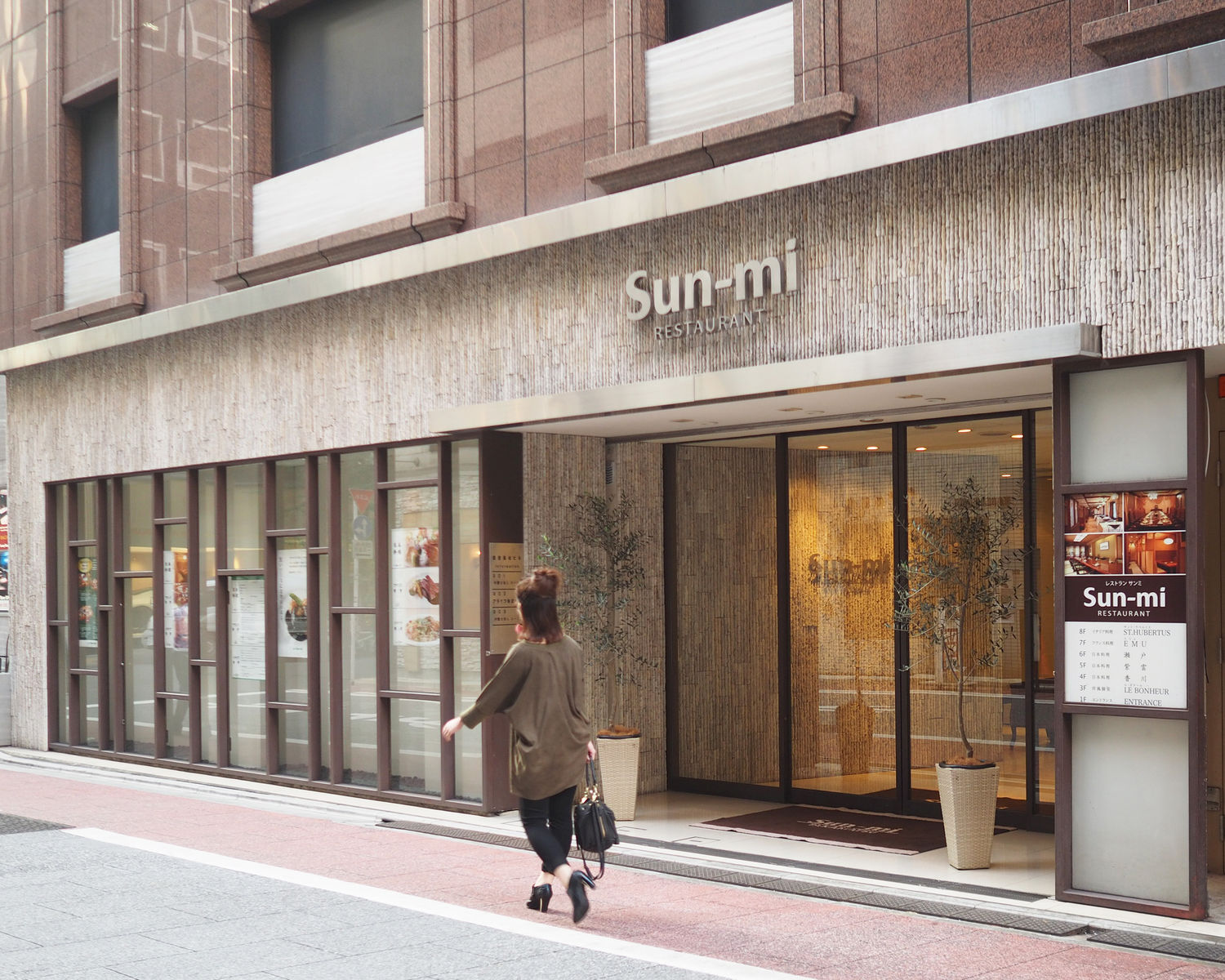 10階建てのビルには〝日〟〝仏〟〝伊〟と三味のお店がフロアごとに分かれていまして、ハンバーグがいただけるのは4階にある日本料理の『香川』と7階にあるフランス料理の『ル・ブリアン エミュ』の2軒であるとのこと
