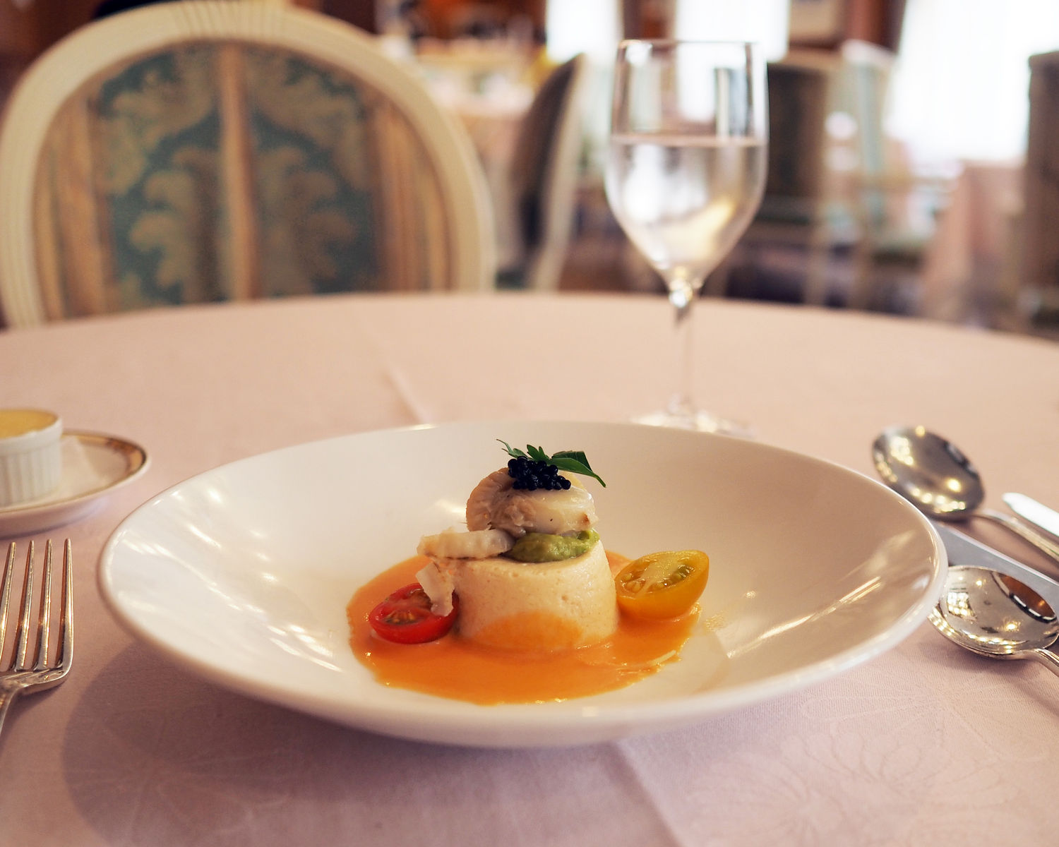 ピンクのクロスが敷かれるテーブルでのひとりランチは寂しいものでありますが、おいしいお料理がいただけるのであればそれも厭わず…