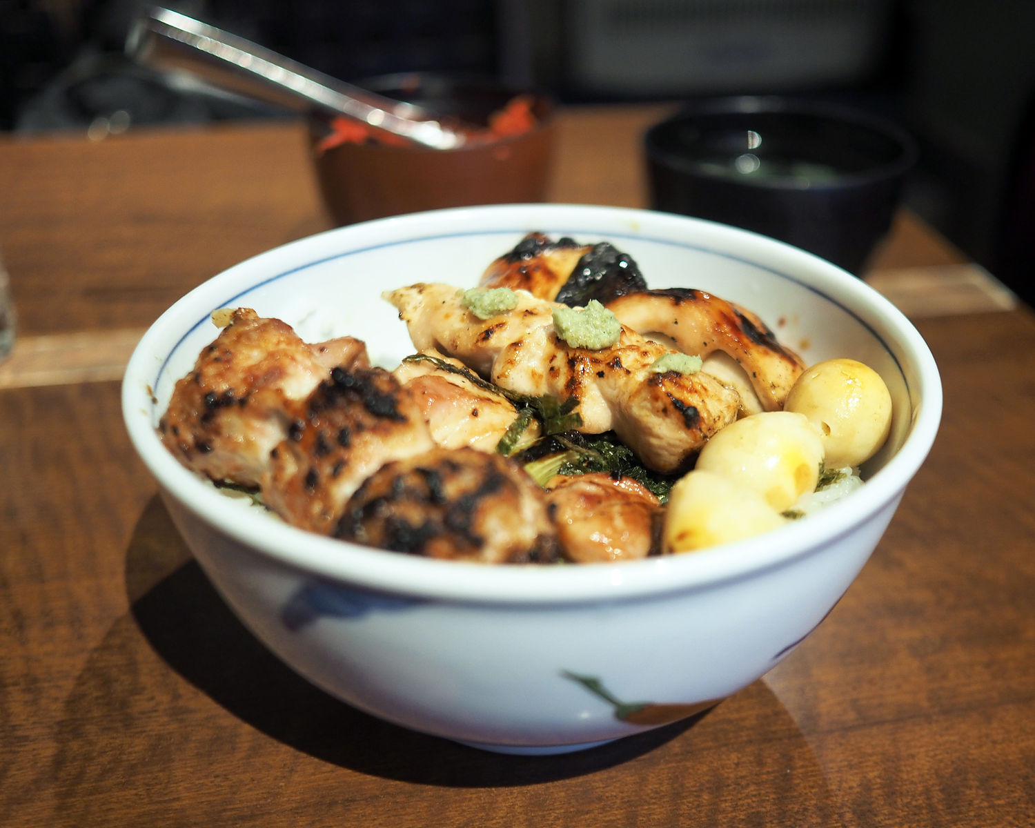 ラーメンには焼き鳥小丼が付くようで、先の女性も塩ラーメンを注文しておられましたが、ワタシは「焼き鳥丼」をいただくことに…