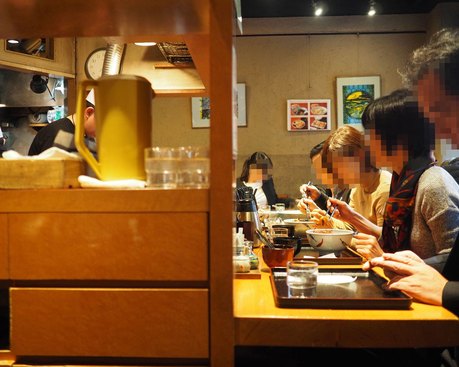 そろそろお昼のピークが終わるころかと13:00にお邪魔してみますと、タイミングよく空いたテーブル席に、先に待っておられた女性と相席で案内されます