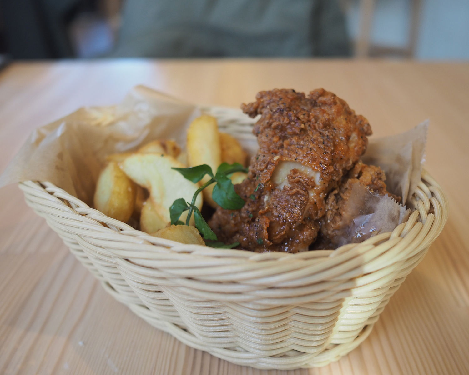 オリジナルのほか柚子胡椒やスパイシーチリ、チーズとフレーバーを選ぶことができる「チキンバスケット」はふっくらとジューシーに揚げられていて、サクッとした衣の食感とともにおいしくいただけるものでありました