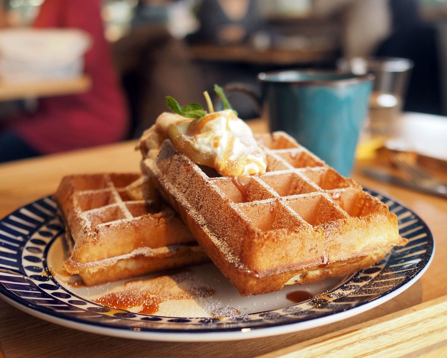 先ほどお昼をいただいたばかりだということで、ワッフルをふたりでシェアさせていただくことにいたします