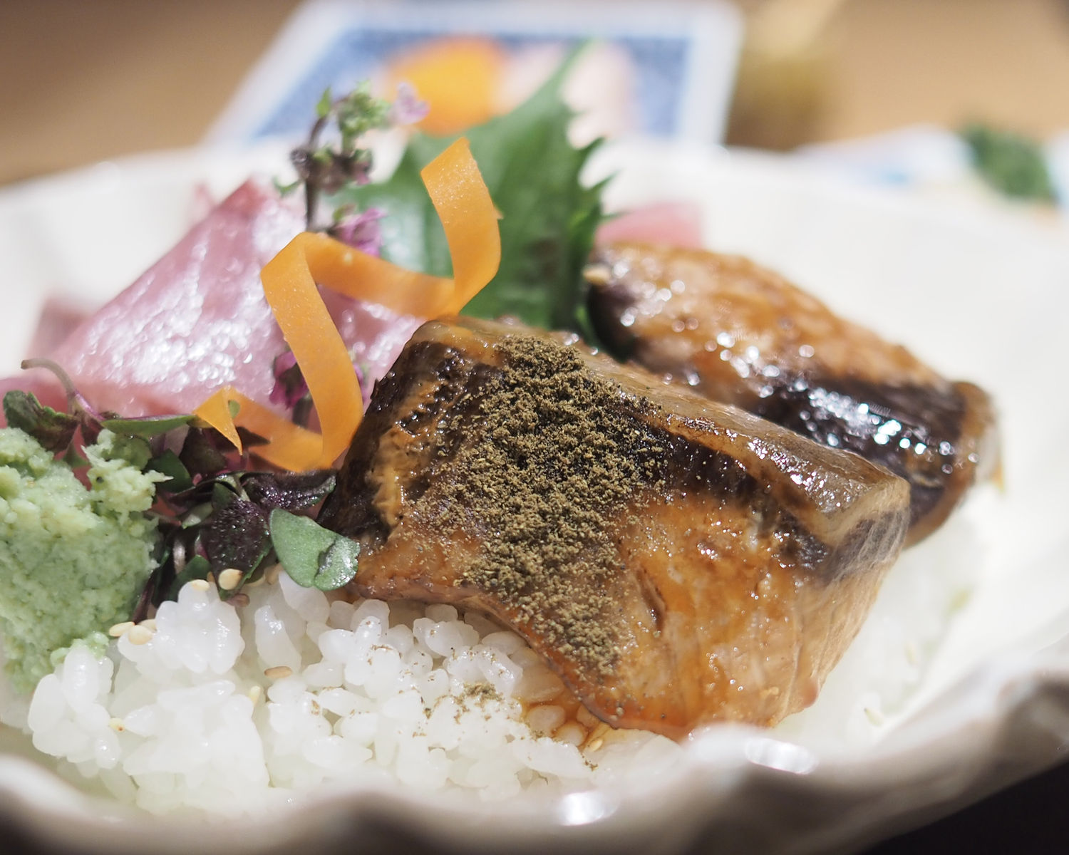 照り焼きはちょっと身が締まり過ぎているように思えましたがタレは甘過ぎず辛過ぎず程よいものでありまして、山椒を掛けてもおいしくいただけるとのこと