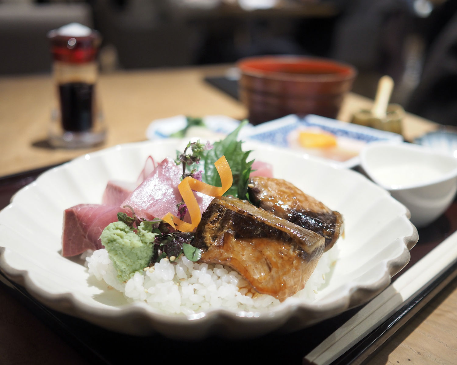 今が旬であるぶりの照り焼きとお刺身の両方を一度に楽しめる「ぶり丼」