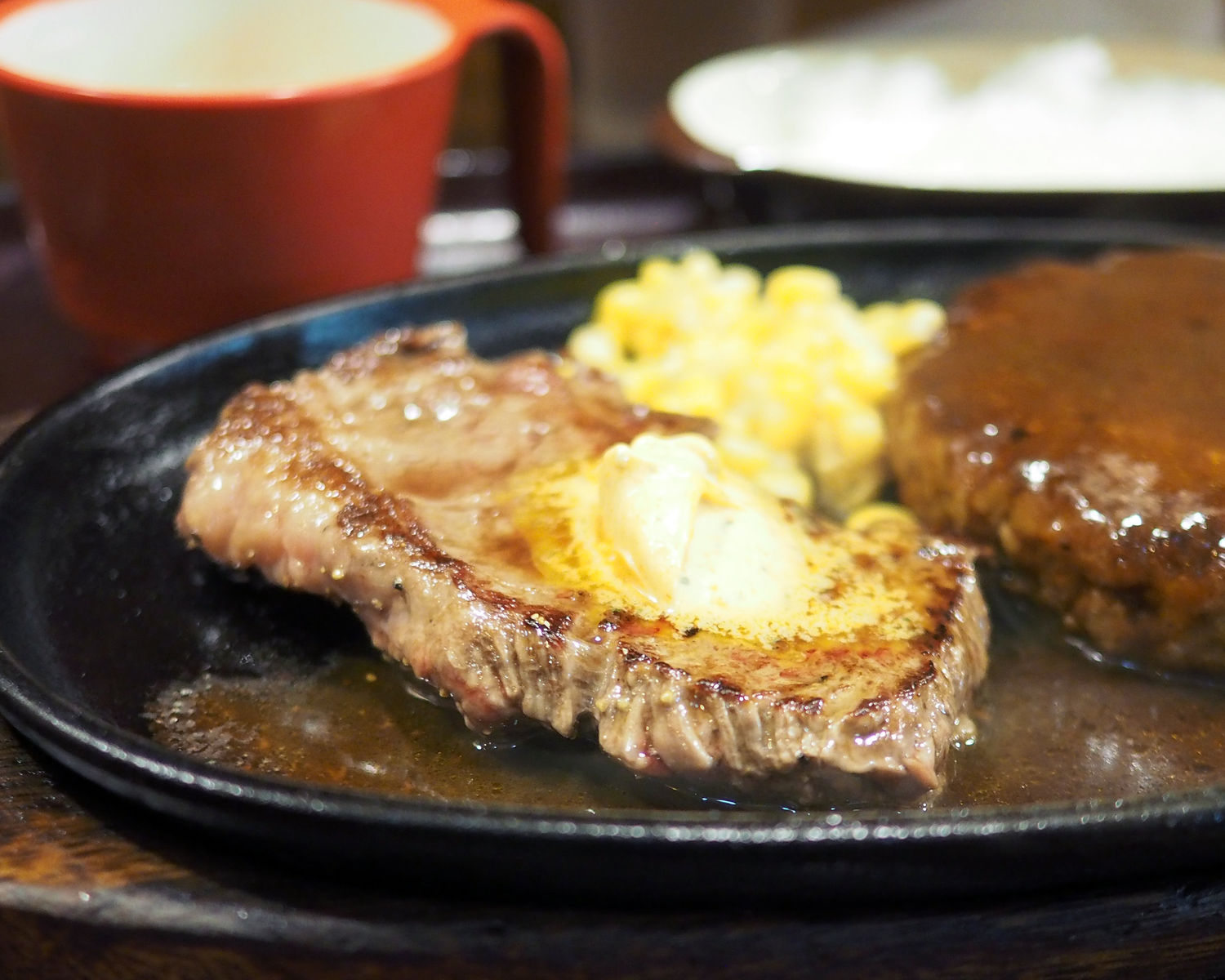 ステーキは些か硬さを感じるものの創業以来受け継がれるという醤油バターの風味に食欲がそそられますし、サラッとはしていますが旨味があるデミグラスソースが掛けられるハンバーグは柔らかくペロッといただいてしまいました
