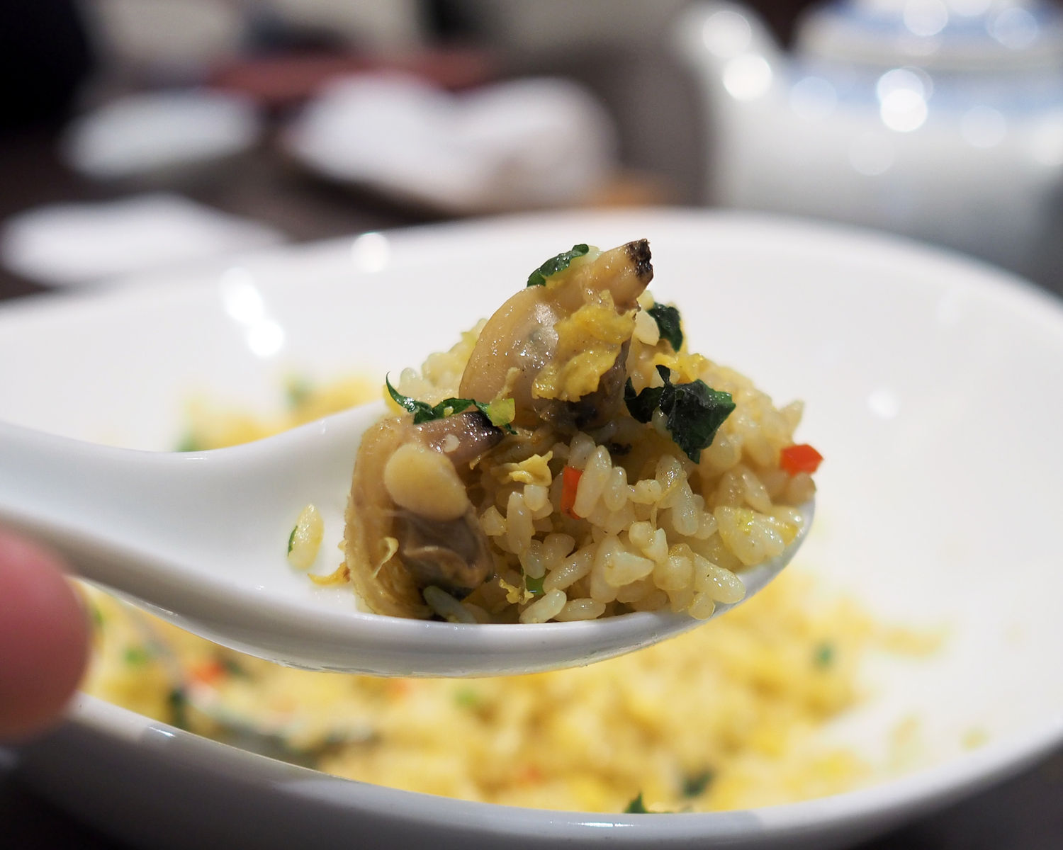 ご飯がパラパラになるまで丁寧に炒められたおいしさも然ることながら、生姜で煮込まれたのではと感じるアサリがアクセントになっていますし、大葉の香りが爽やかで感動しました