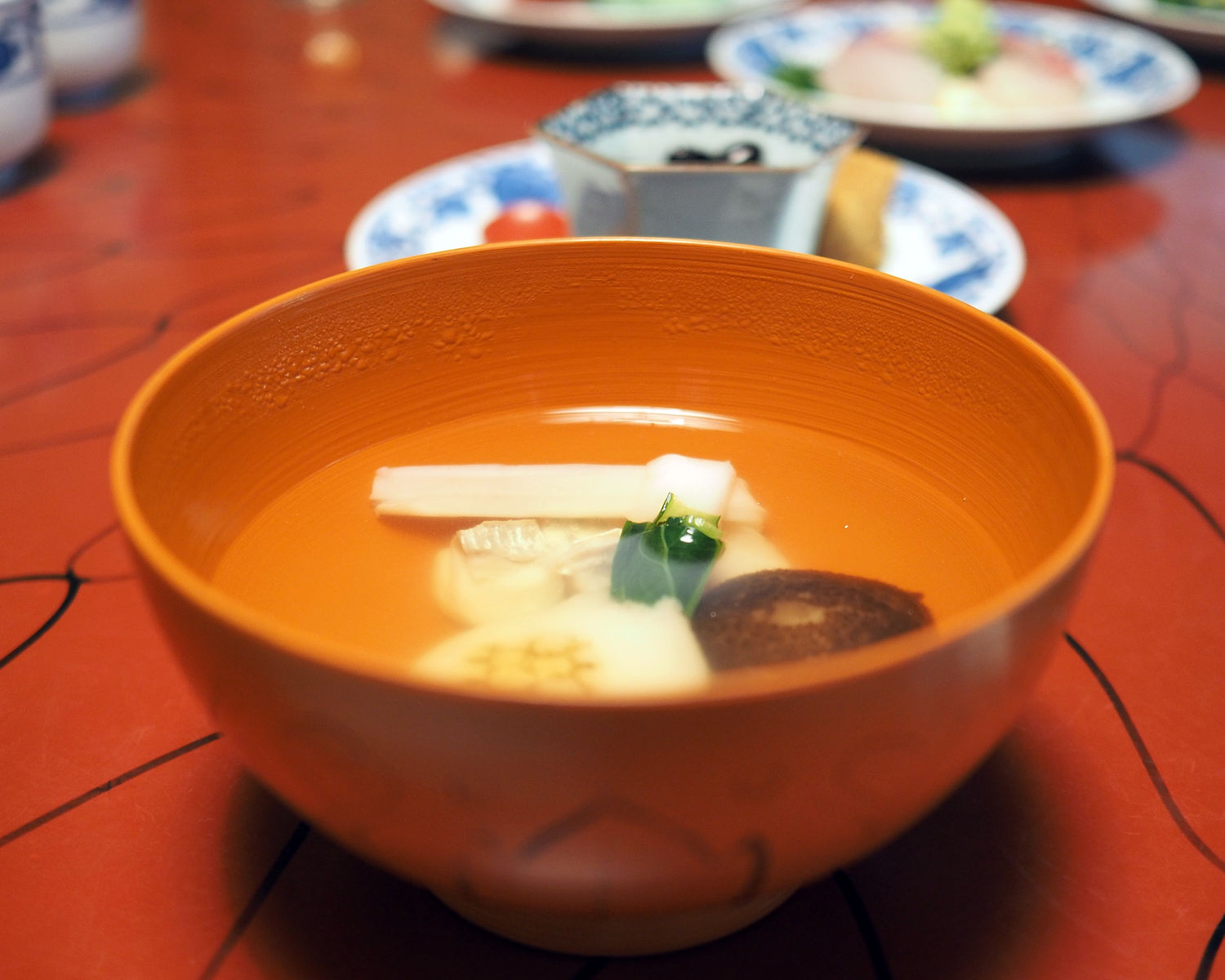 「お客様一人に鯛1尾を使いました」というもてなしの意味が込められているとのことですから、そのもてなしに感謝を込めて、きちっと出汁が出たおいしい吸い物をいただきます