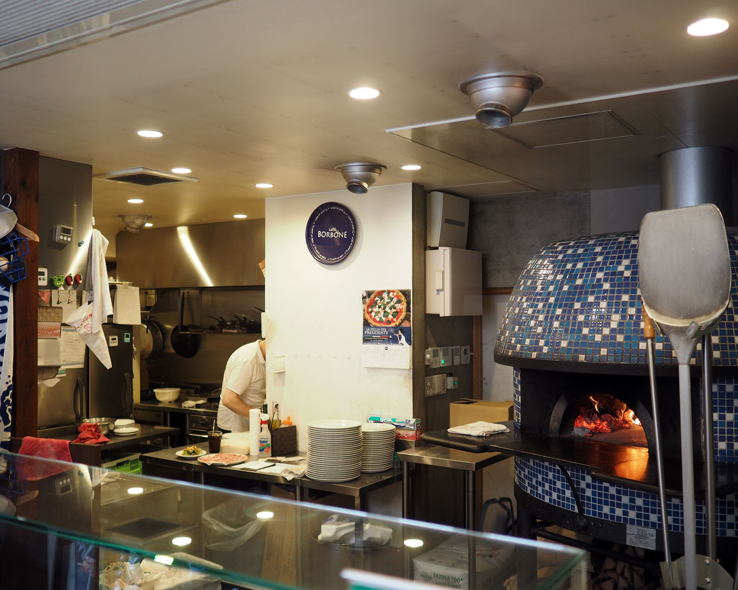 狭い階段を上った2階にはテーブル席があるようですが、ひとりでお邪魔したワタシは1階のカウンター席へと促されたのですが、そこは目の前にピッツァイオーロが立つベストポジションでありまして…
