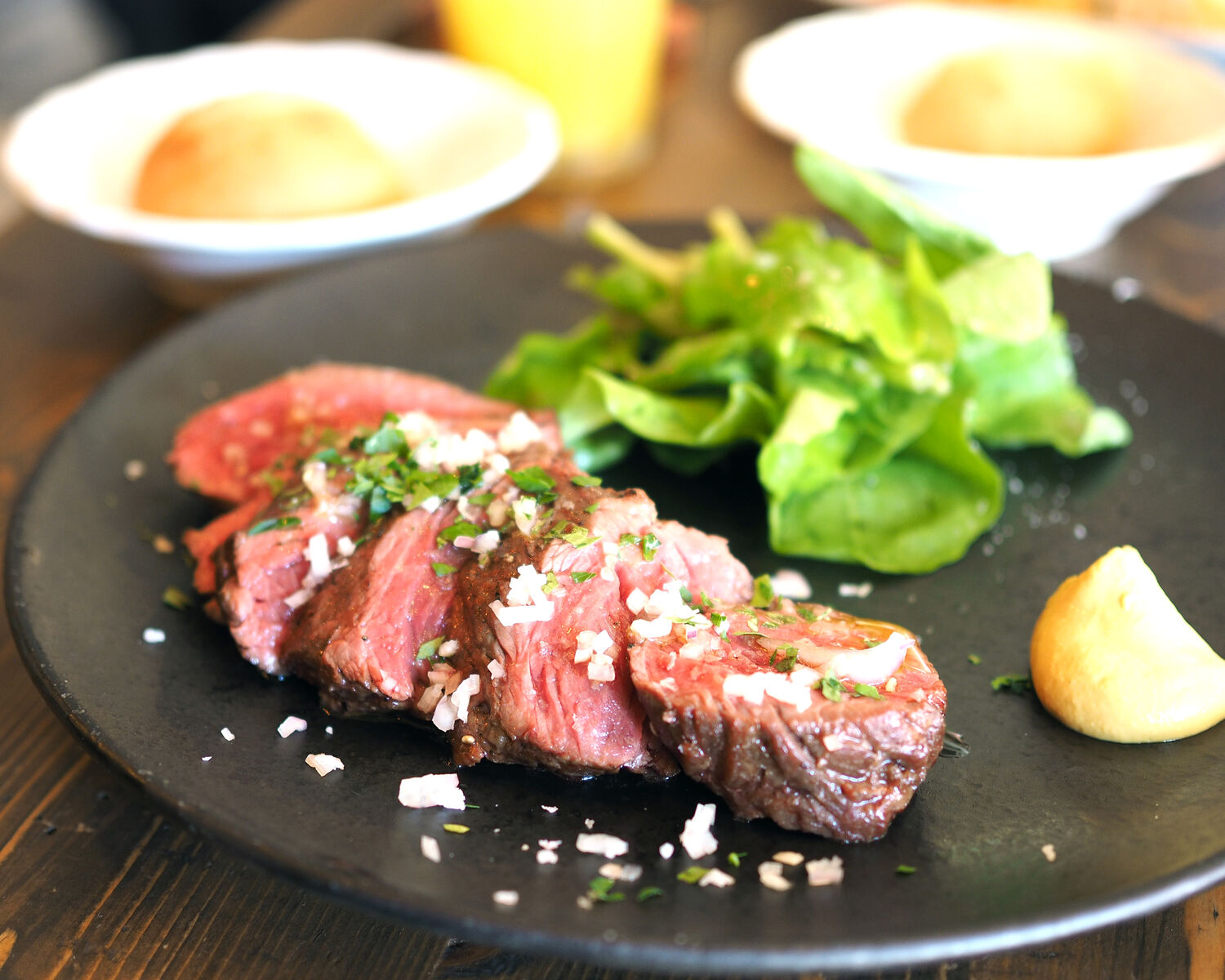 メインからは「牛ハラミのステーキ 柚子マスタード添え」をいただきます