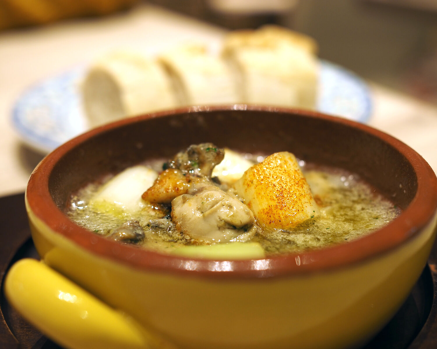 定番であるものもありましたが“冬のオススメ”とあるメニューから「牡蠣と長ネギのはアヒージョ」を選びます