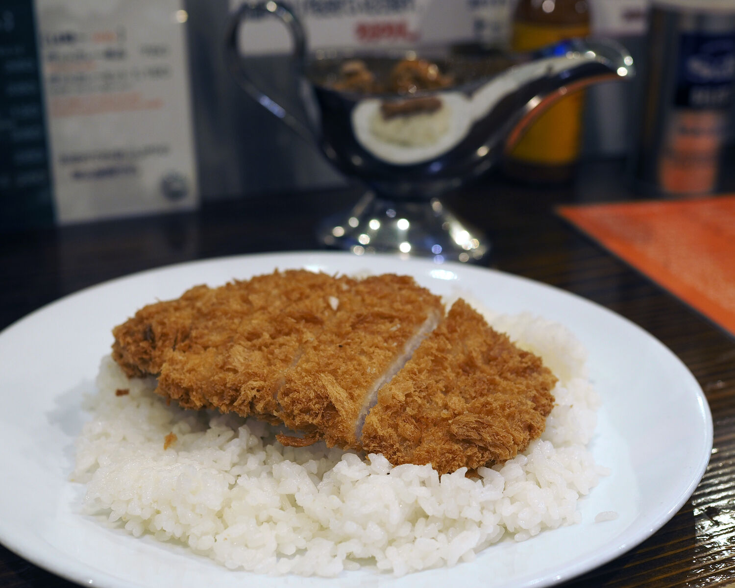 メニューにはチキンカレーやポークカレー それに具材がトッピングされたものなど、円やかな味わいである“欧風ルー”を使った商品がズラリと並んでいるのですが、こちらの看板メニューは本格的な香辛料の香りと辛味が特徴である“印度ルー”であることから「印度カツカレー」をいただくことといたします
