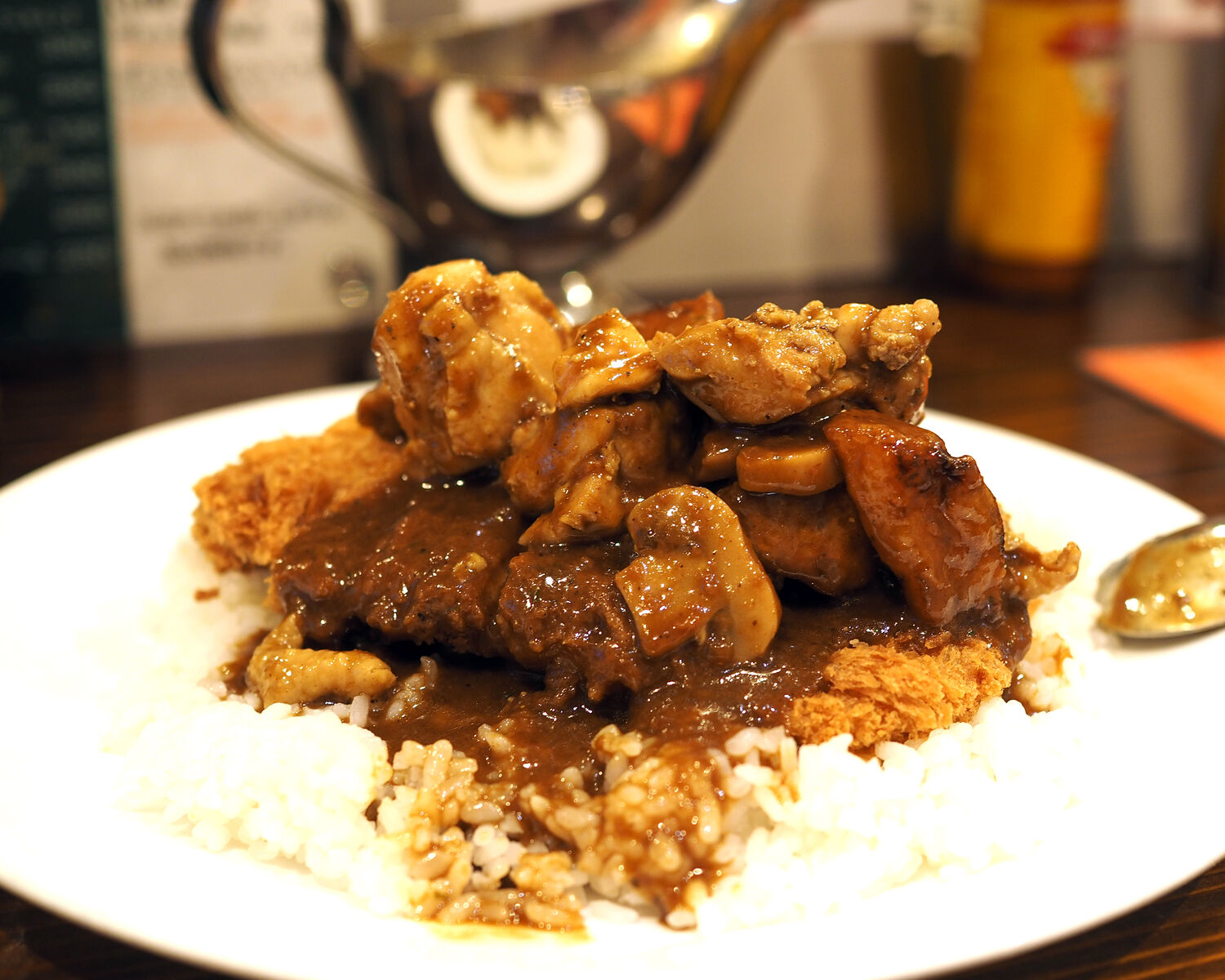 "本格カレー"を謳うカレースタンドでありまして、1958年の創業から60年以上も経った今でも多くのファンに支えられているようで、お昼どきには厨房を囲う18席のカウンター席に座りきれないお客さまが店先に列を作っているのでありますが…