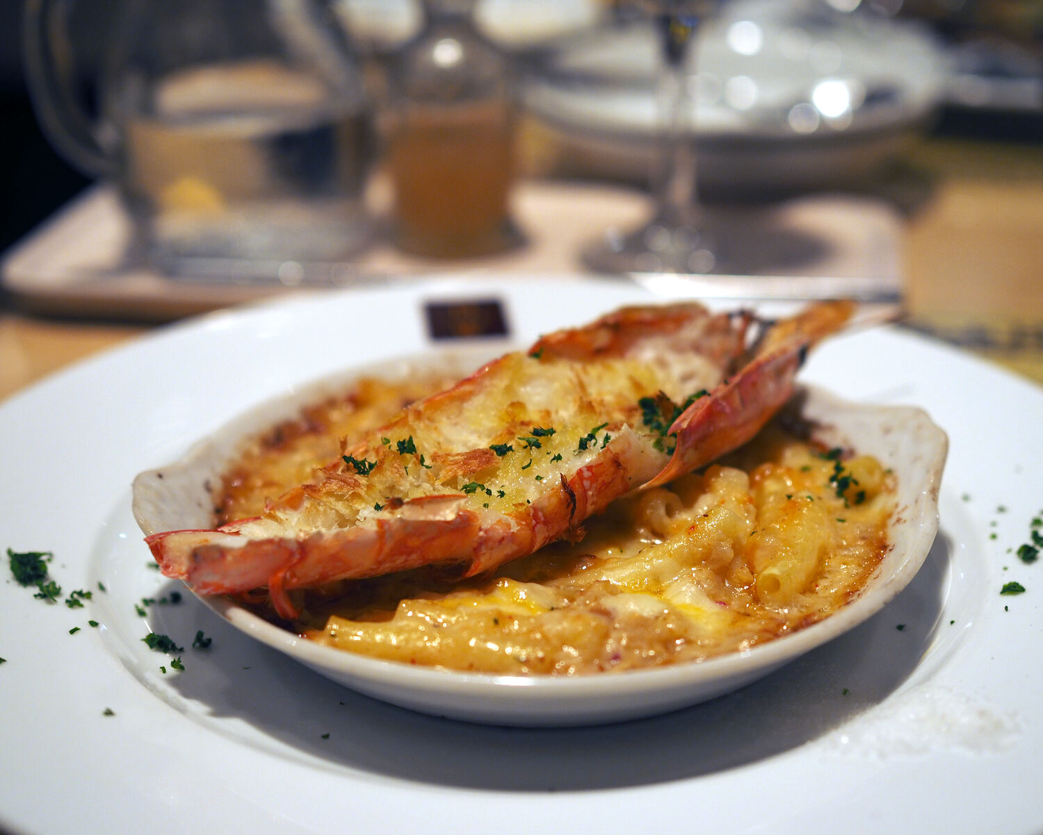 有頭海老のマカロニグラタンということでアメリケーヌソースが混ぜられたベシャメルがアルデンテに茹でられたマカロニと絡んで甲殻類独特な甘みとコクを堪能することができましたし、パン粉焼にされた海老も芳ばしさを楽しむことができるものでありました
