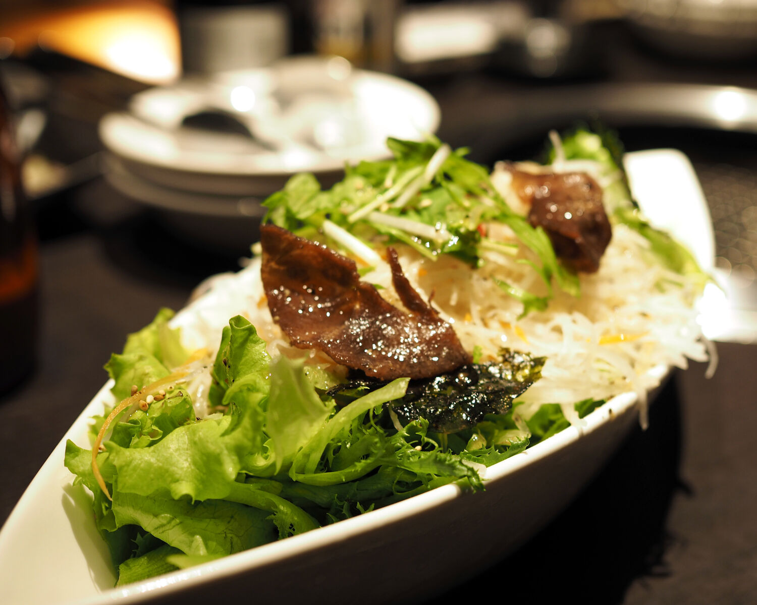 前菜やサラダなどをいただきお腹の準備ができたところで提供されたのが「牛タン盛り ∼柚子葱を巻いて∼」