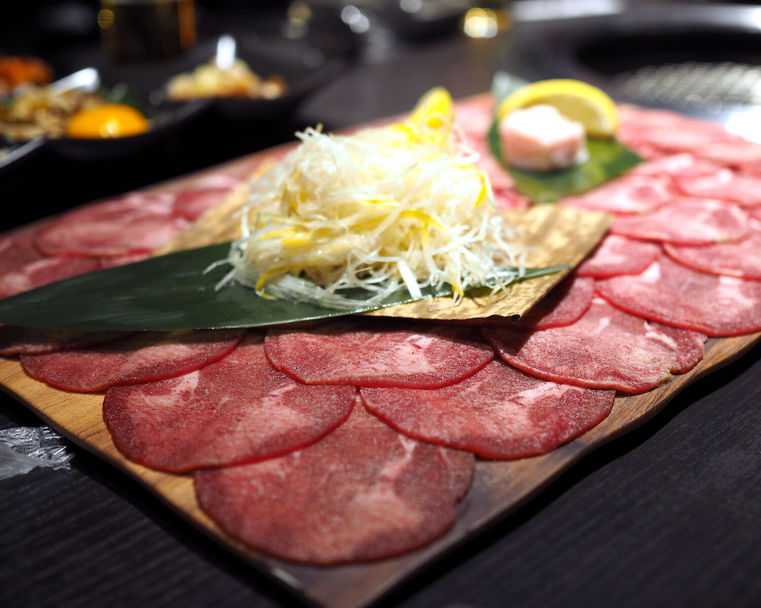 6人掛けのテーブルにふた皿とのボリュームに驚かされましたが、薄切りにされたタンを軽く炙るように焼き上げ、添えられている柚子葱を巻いていただきますと…