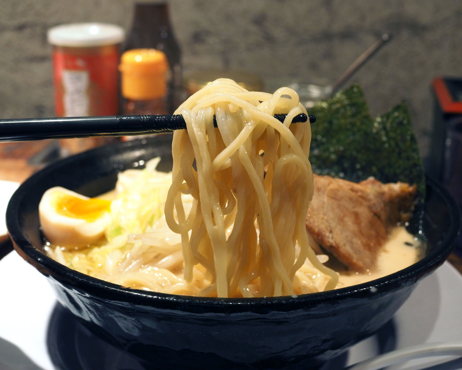 クリーミーなスープ腹少々濃い目の味わいなのでありますが、焼豚の下に隠されたキャベツの千切りが良い仕事をしてくれていて、シャキッとした歯ざわりとともにおいしくいただくことができました