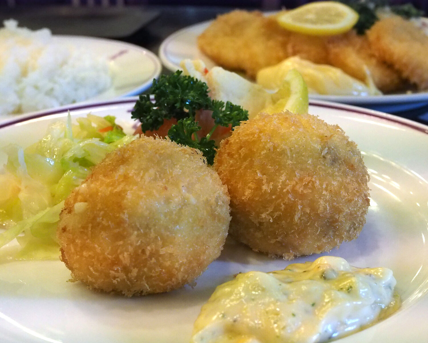 ご承知の通り「タンポポオムライス」が有名なお店ではありますが、いただくのは「帆立フライ」と「蟹クリームコロッケ」