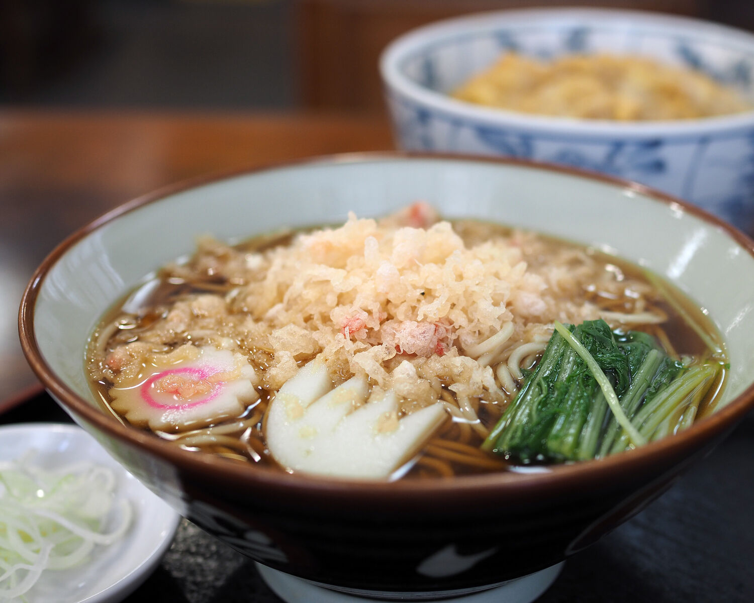 乗せられる“揚げ玉”は天ぷらを揚げときでに出る“天かす”ではなく、あみえびを絡めてわざわざ揚げられたものであることから香りもよく細打ちされたお蕎麦とともにおいしくいただけます