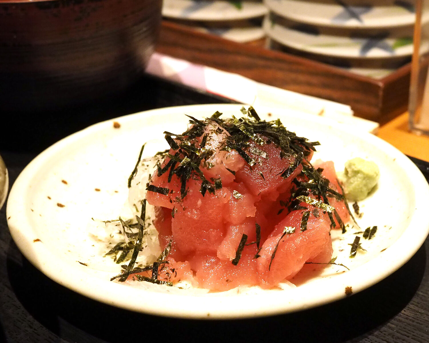 期待していた15mm角ほどのサイコロ状ではありませんでしたが、使われる部位は中落ちでありましょうか