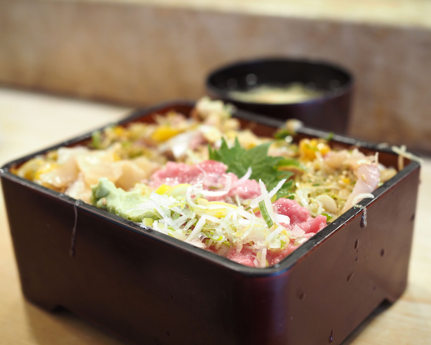 メニューには丼とありますが、"梅トロ" や "トロたく" "ネギトロ"と3種から好みのものを選ぶことができるトロをメインに、新鮮な "アジ" と "イワシ" のたたきが添えられたお重でありまして…