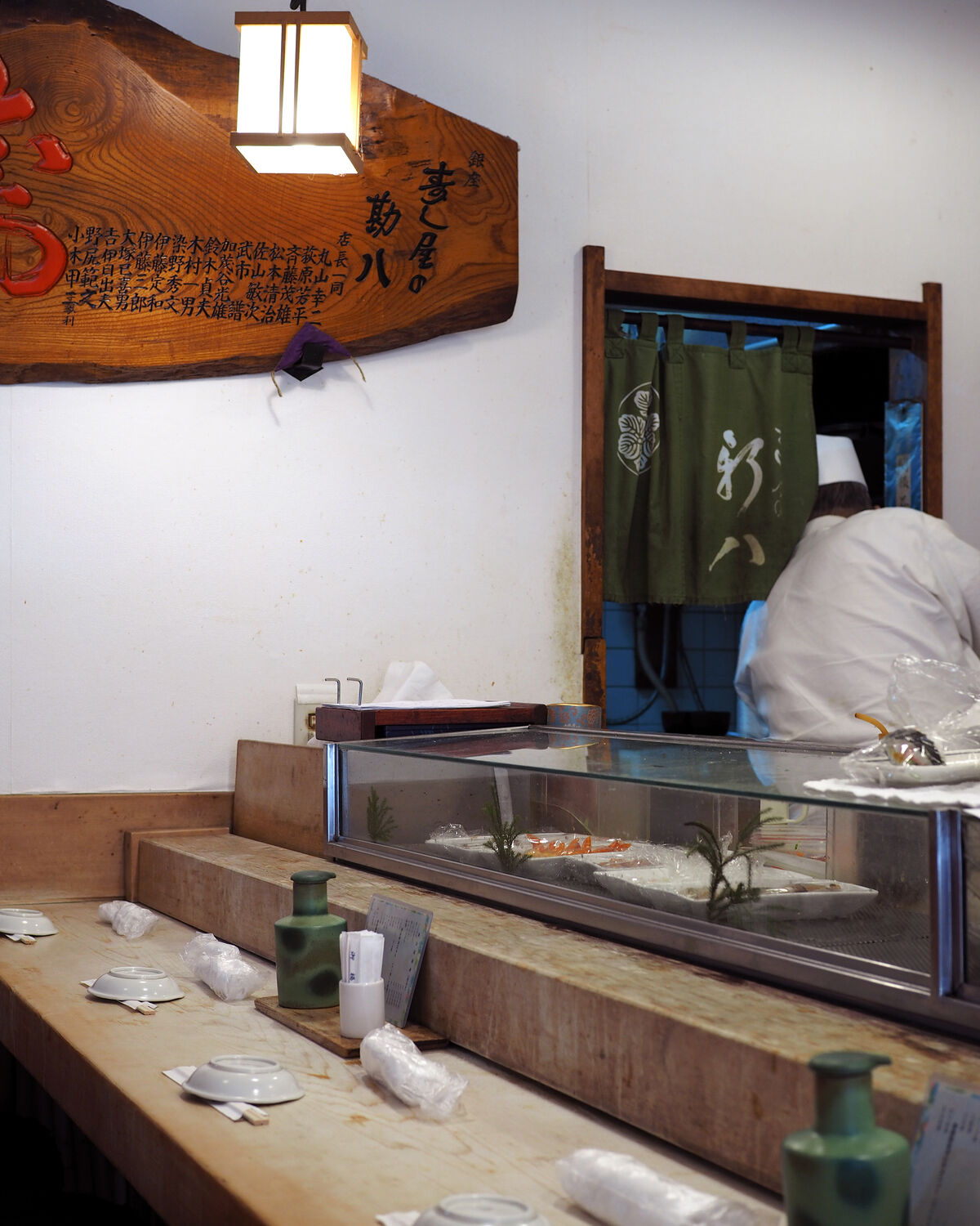 年季が入った白木のカウンターには先客がひとりと寂しさを感じる状況でありましたが、すぐに会社の仲間であろう3人連れやカップルなどが来店されたことで大将の顔にも笑顔がこぼれます