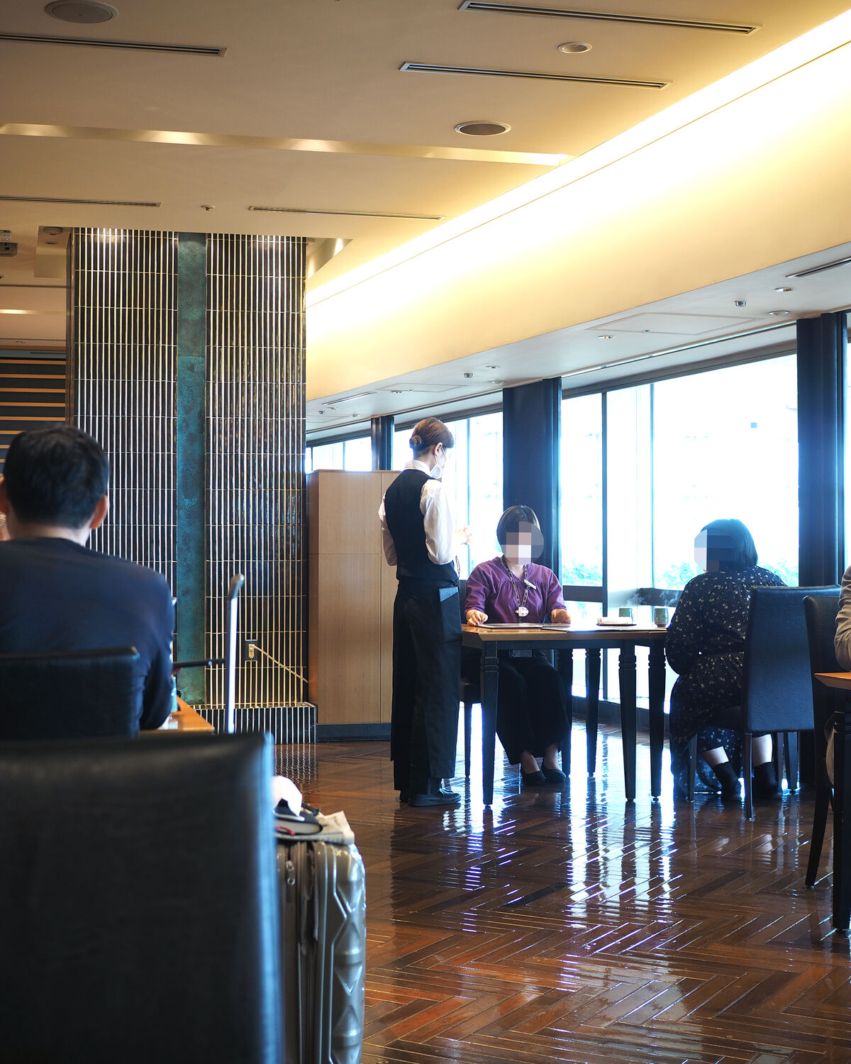 4名掛けのテーブルからは椅子が2脚外され、互い違い椅子が置かれるなどと感染防止には気が遣われているようですね