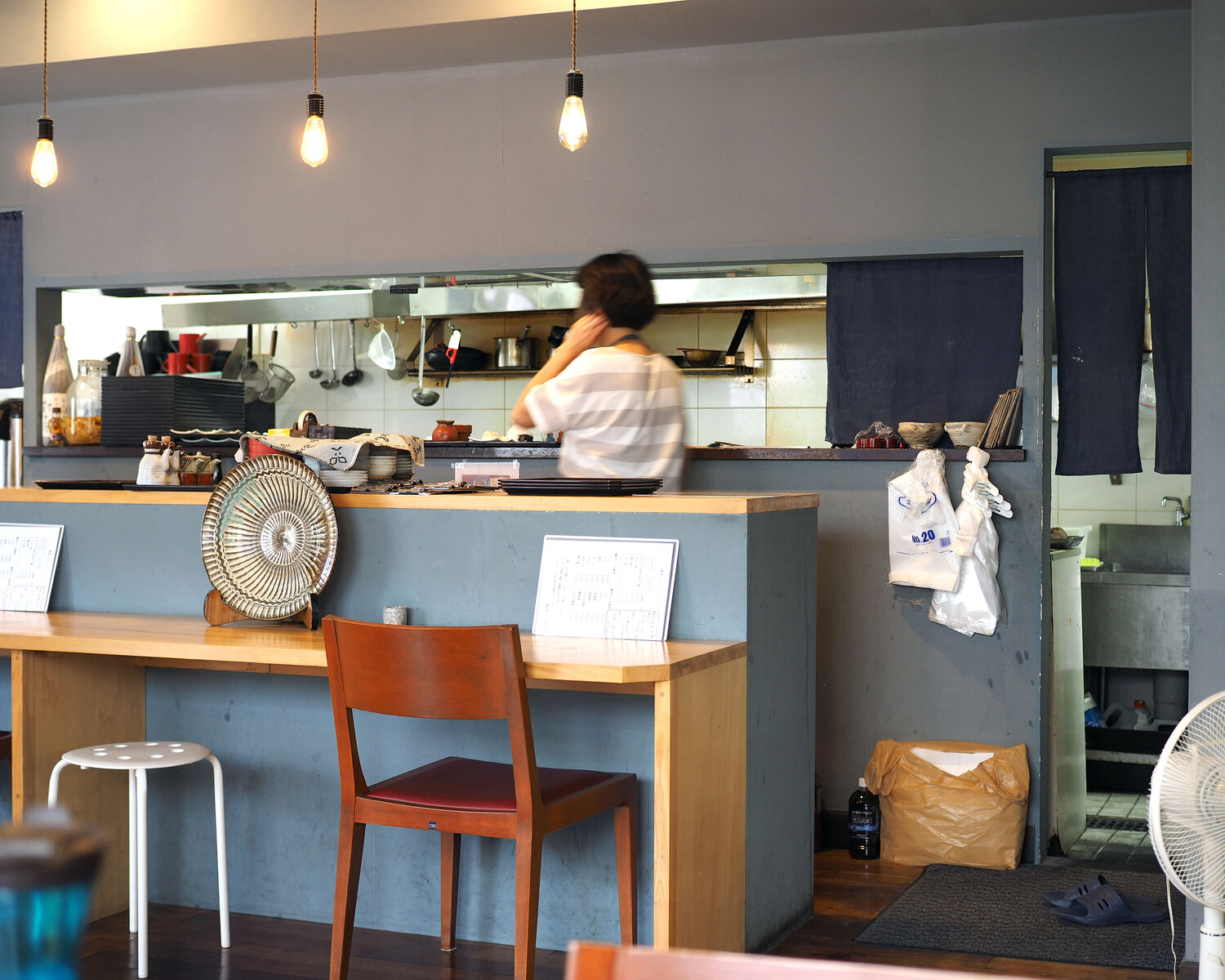 青と白のツートンになった外壁に驚きながら暖簾を潜りますと、店内もかつては洋食系のお店であったかこのようなイメージでありまして…