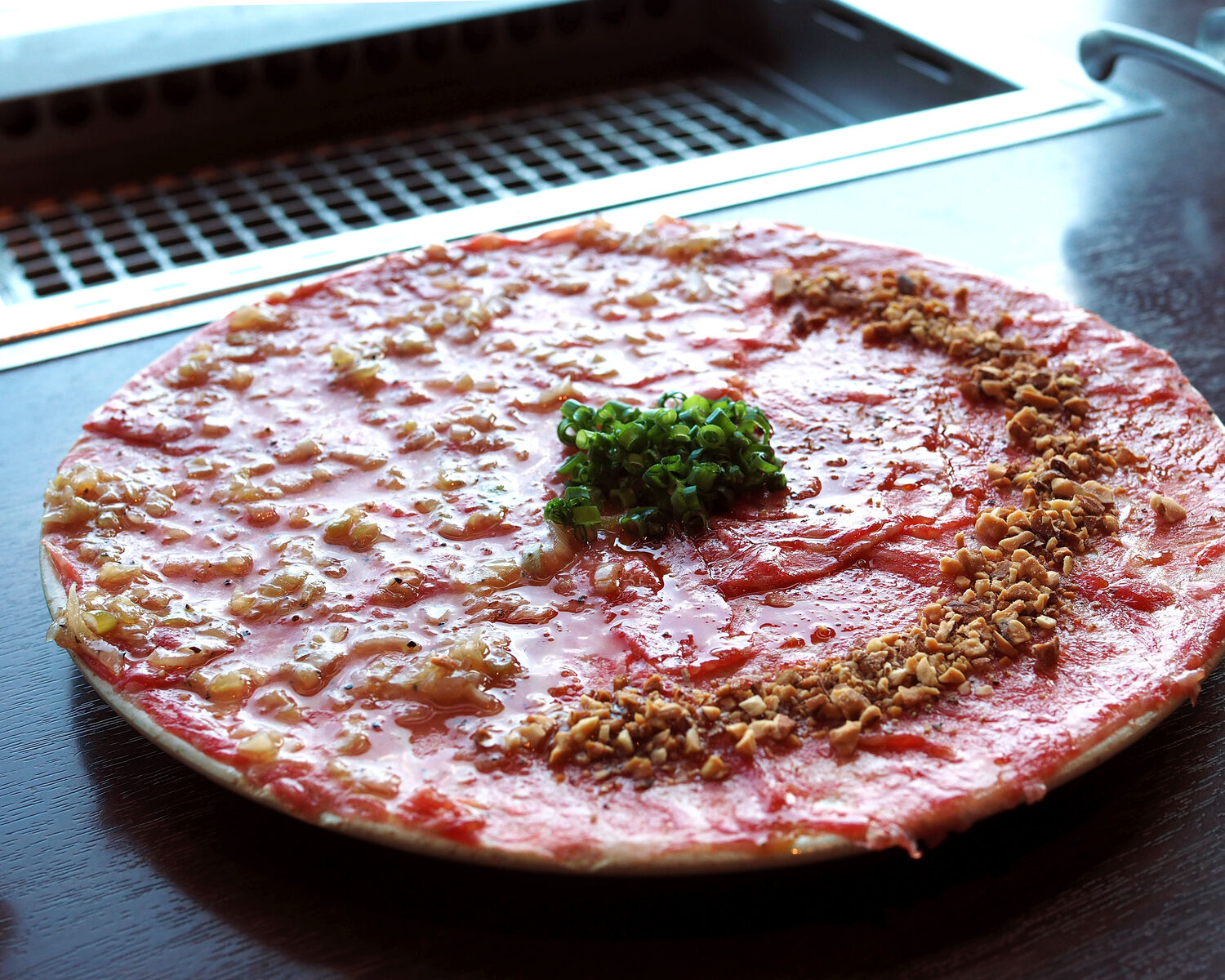 直径20mmほどのお皿に盛られるユッケはひとりでいただくには多すぎるかなぁなんて心配していたのですが、ナッツがトッピングされたものと塩だれでいただくものとのハーフ&ハーフであったことから飽きることなくいただくことができますし…