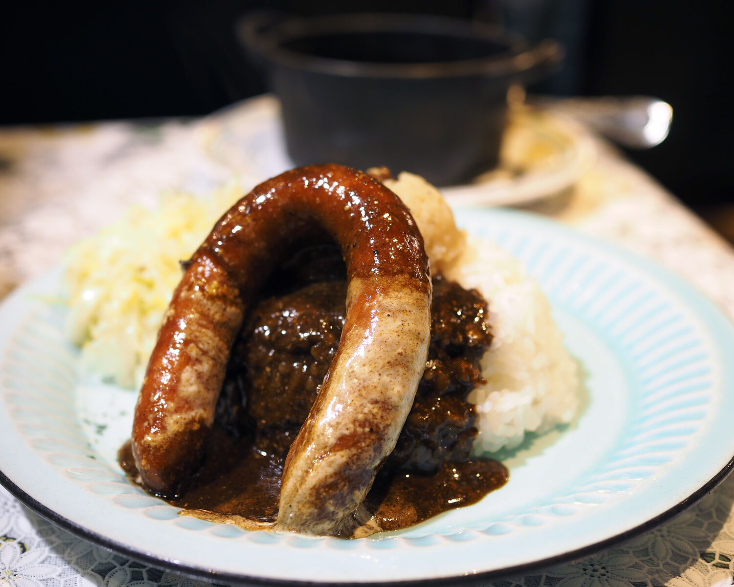 ソースの中に隠れてはいましたが、そのソーセージは300mmほどの長さであろうと思われる本格的なものであることプチッと弾ける肉汁たっぷりなおいしさを堪能することができました