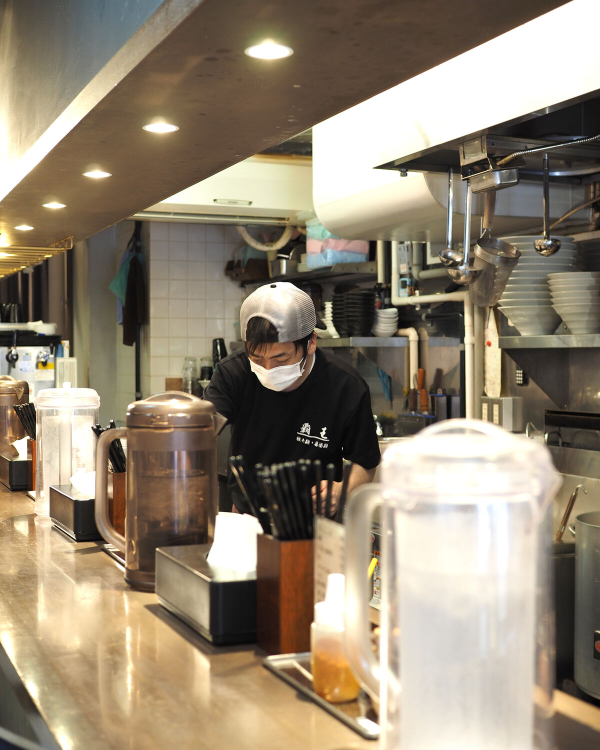 入口脇に置かれた小さな券売機で麻婆麺のチケットを購入したあと12席ほど並ぶカウンターの端っこをいただきます