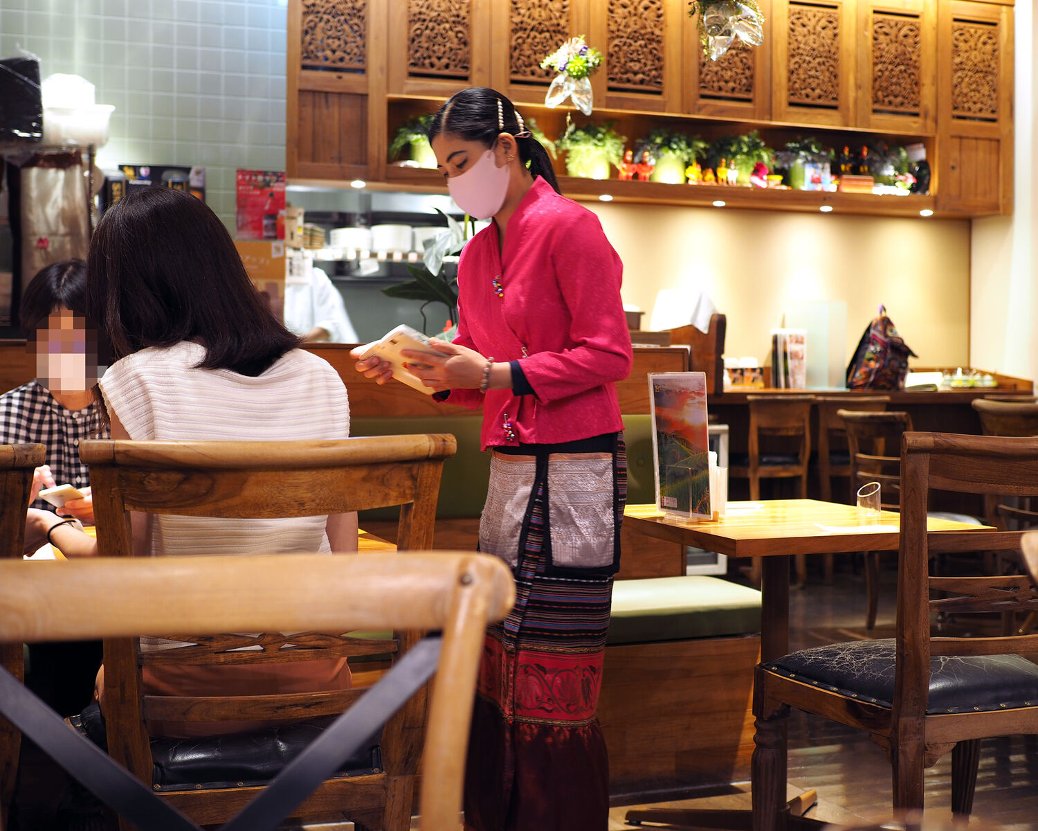 お昼に用意されるメニューから、チェンマイガパオとグリーンカレーのセットをいただきます