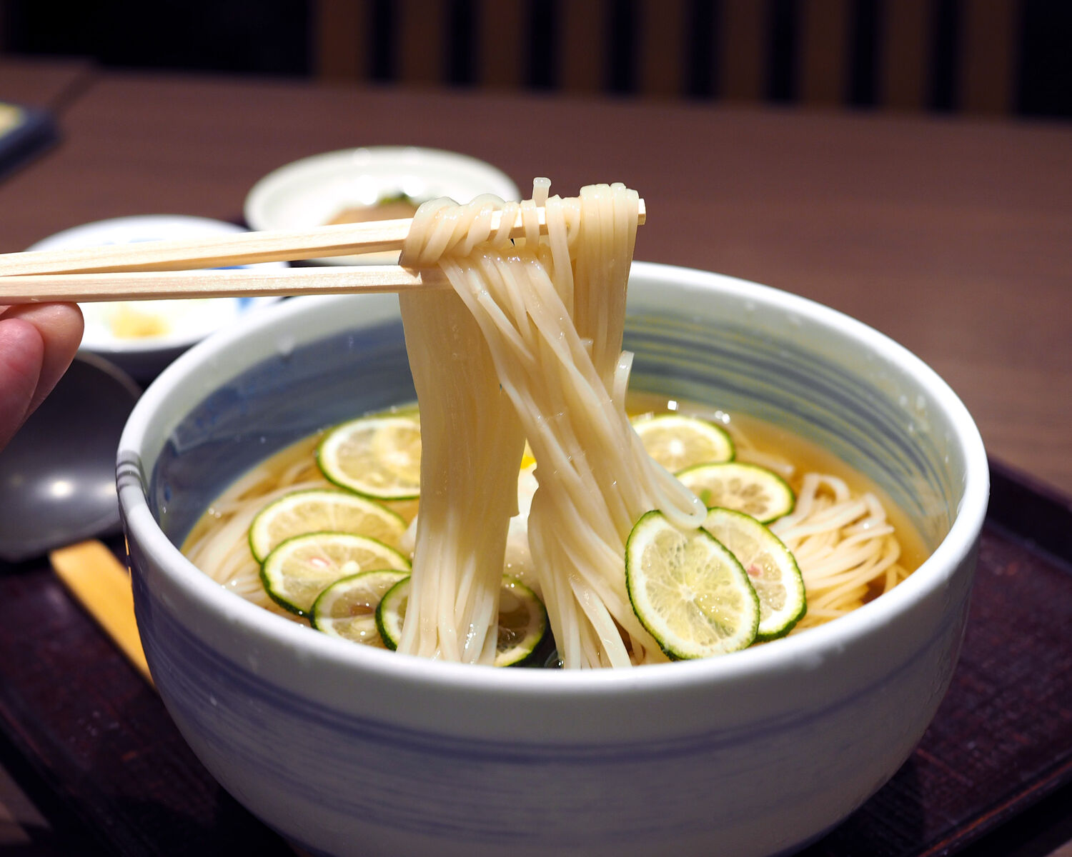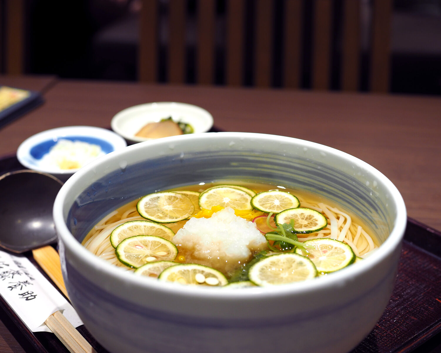 それだけでも十分においしくいただけるのですが、そこに薄くスライスされたすだちが美しく浮かべられることでの爽やかな香りが加わることで一層スッキリといただくことができました