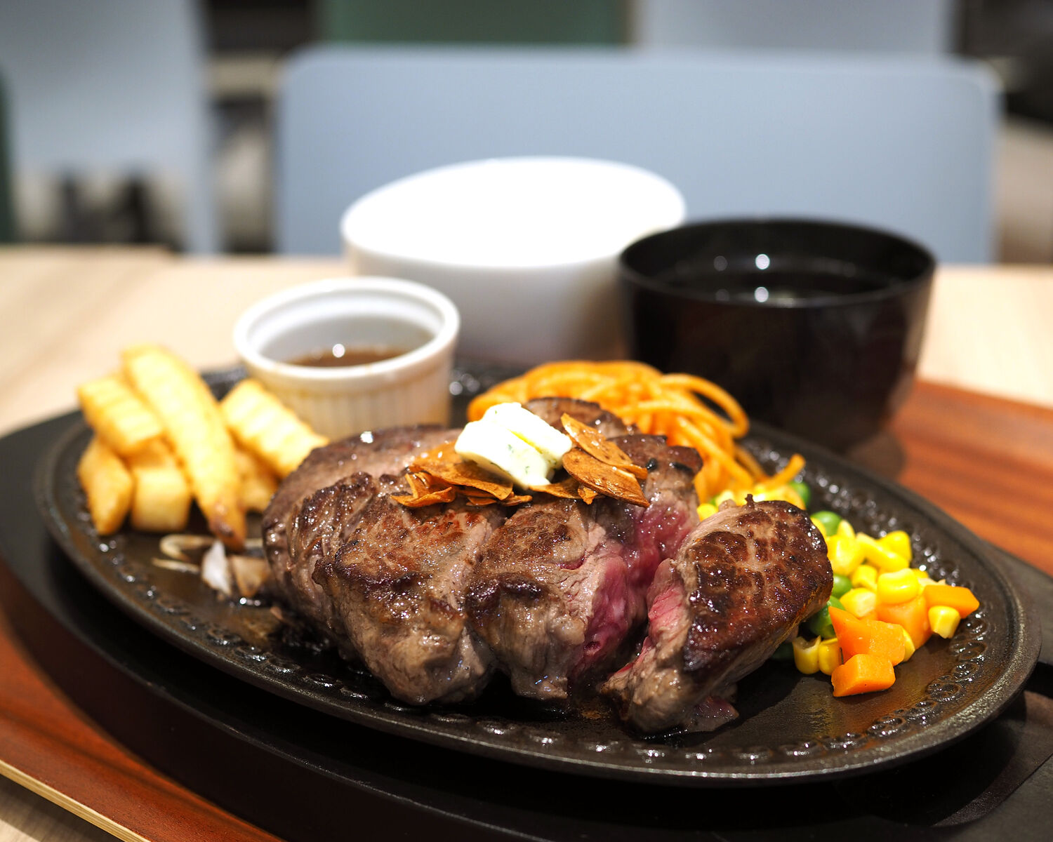 ミディアムレアでお願いしたステーキは30mmを超えるほどの厚みでありまして、しっとりとした舌ざわりだけでなく、スジがキレイに取り除かれていることで柔らかさを楽しむことができました