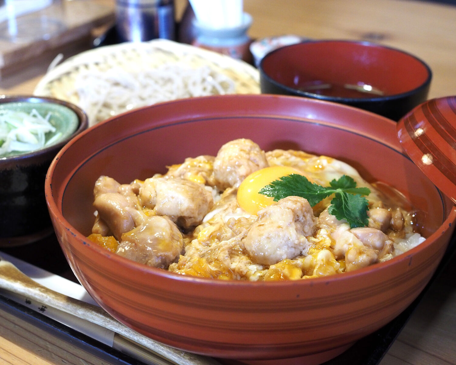 お昼に提供されるお料理は親子丼と鴨重をメインに鴨せいろや鳥そば、鳥坦々麺と用意されていまして…