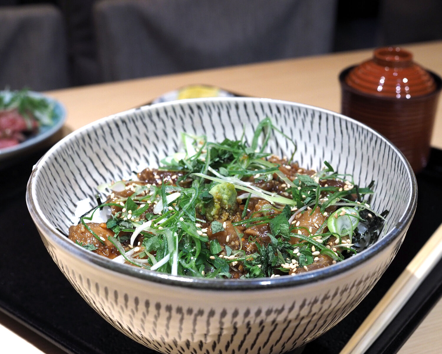 メニューの先頭にあることから「りゅうきゅう丼御膳」がイチオシであるようですし、本日いただけるのはまぐろとぶりの“りゅうきゅう”であるとのことでそれをいただくことにいたします