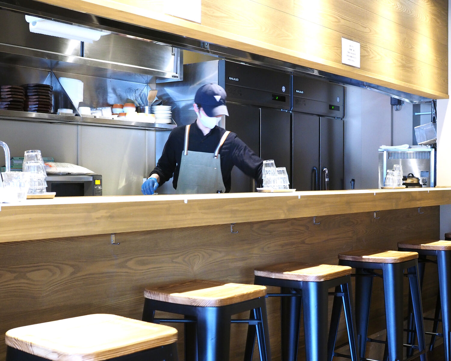 10人ほどが座ることができるカウンター席をメインに、2名掛けのテーブルが5つ置かれる小さなお店でありまして…
