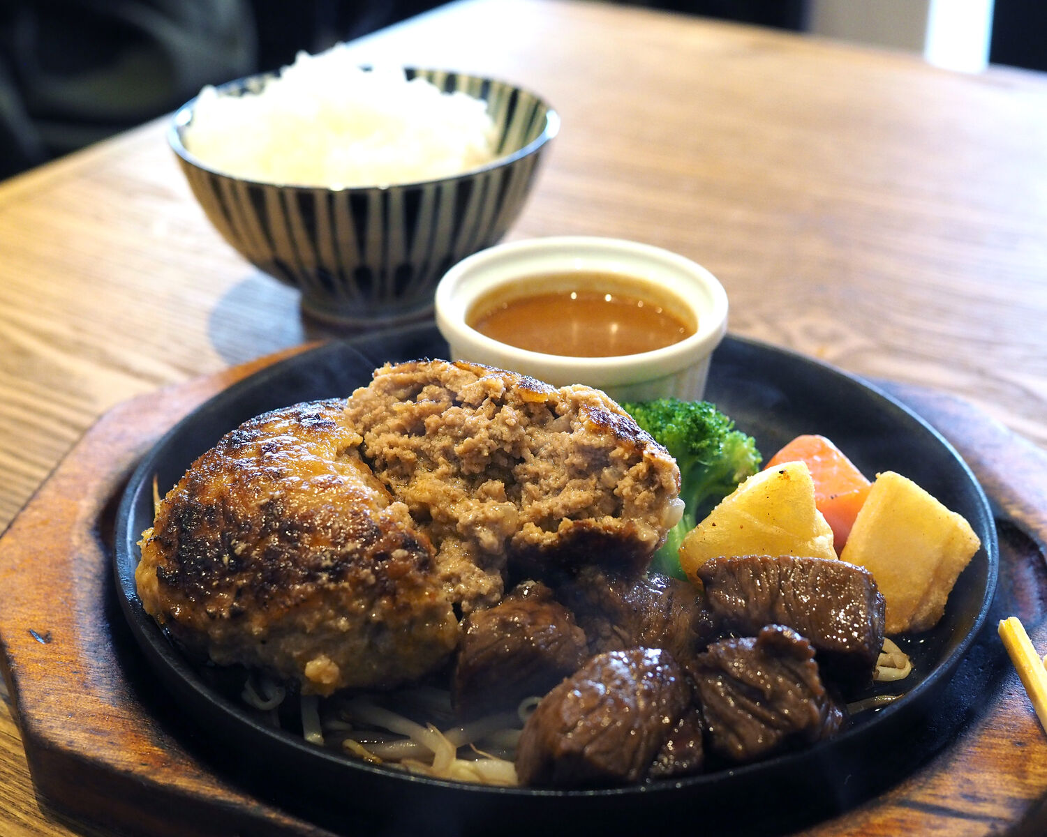 和風とオニオン、デミグラスの3種から選んだデミグラスソースもサラッとした軽い味わいであったことから、シンプルにお肉の旨みを感じることができるものでありました