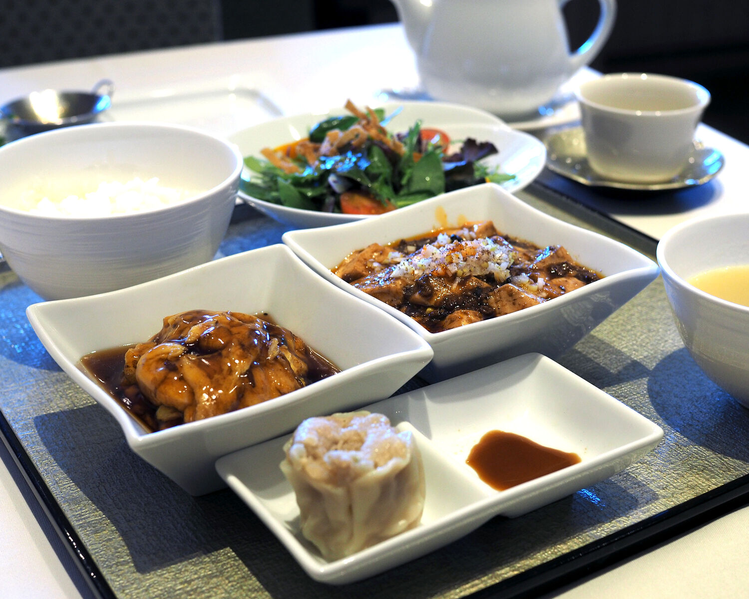 御膳にはスープとサラダ、そして小菜として焼売が添えられるのですが、ありがちなキャベツの千切りであるとか水菜といったものではなく…