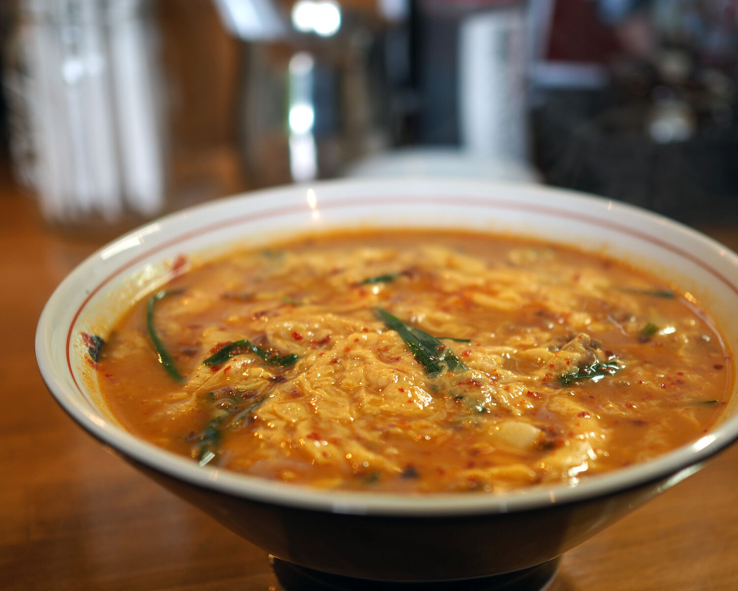 卵を溶かし入れることでのスープのとろみやこんにゃく麺の食感はおいしくいただけましたが、辛さは特辛くらいでも良かったように思えます